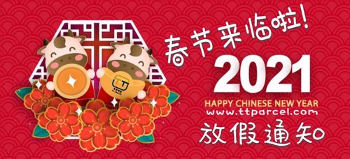 海运: 2021年1月27日最后安排发货 空运: 2021年2月3日最后安排发货 假期: 2021年2月4日-2021年2月22日为假期时间,仓库将无收发货,无人值班。 正常上班日期: 2021年2月23日 由于假期时间较长,请广大会员尽量不要储存包裹在仓库。 请广大客户在假期前提前做好货物运输时间安排,避免问题发生,谢谢各位的配合。 大家新年快乐,身体健康,万事如意