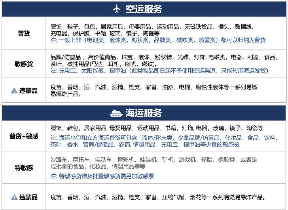 请广大会员注意普货与敏感物区分,空运敏感物品请一定要使用敏感渠道。